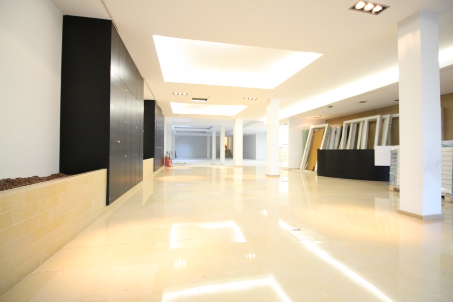 Surface de bureaux moderne et représentative, 650 m2, rez-de-chaussée, espace ouvert, sanitaires, kitchenette, 8 parkings (350 €/ emplacement).